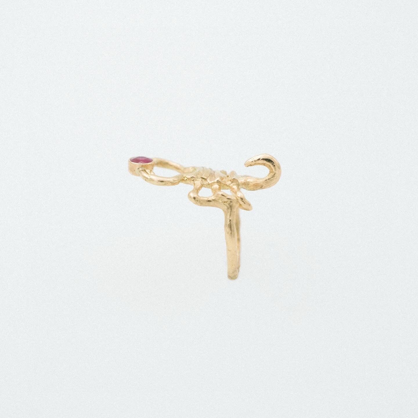 Ziggurat ring 22 ct gold with dark blue sapphire